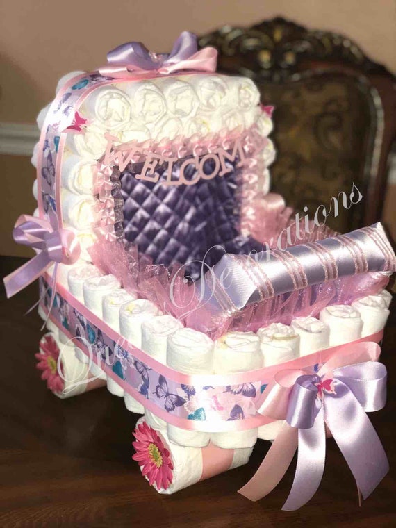 Baby Gift Diaper Cake Pink Carriage diaper stroller for baby shower