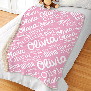 Pink Word-Art Sherpa | GiftsForYouNow personalized name blankets