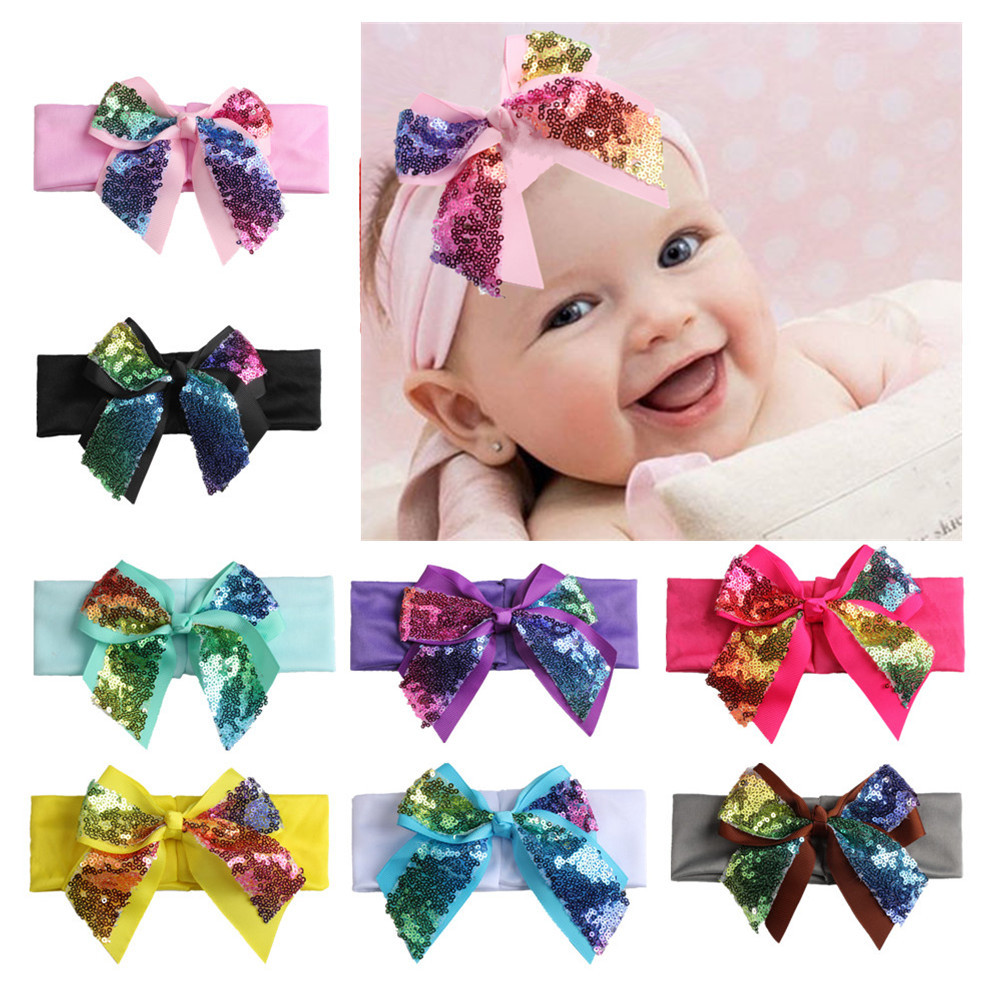 Baby Fashion Sequin Big Bow Elastic bling baby stuff