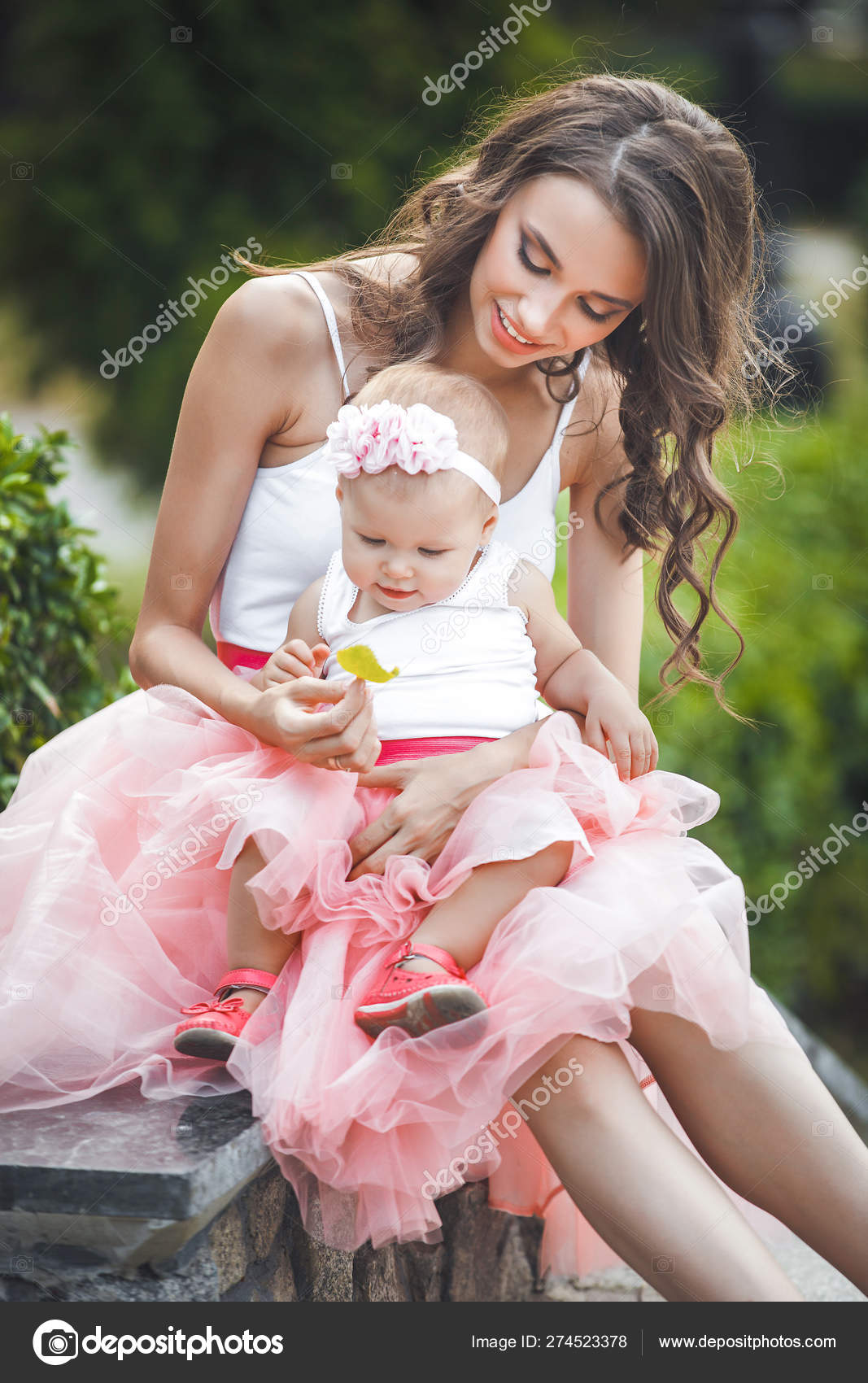 Flower Mom Embracing Daughter Happy mom and baby girl