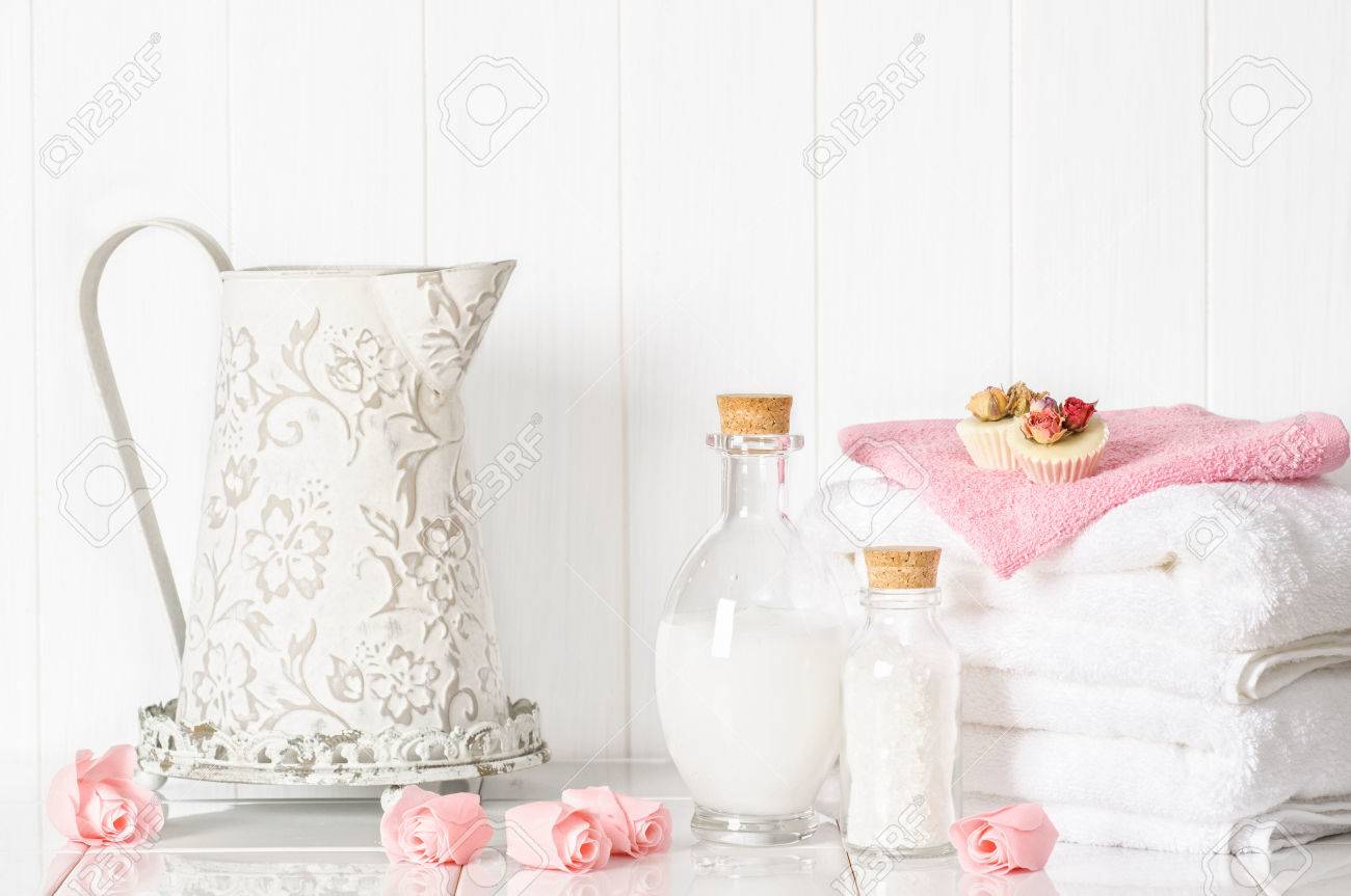 Spa Setting With Fluffy White Towels pampers fluffy