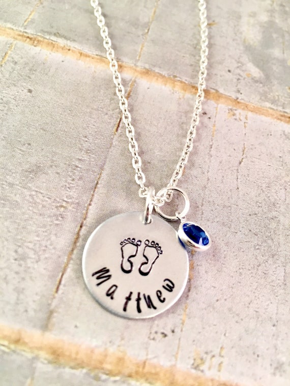 Baby Feet New Mom Necklace Personalized baby name necklace for mom