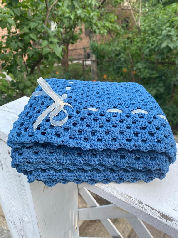 Navy Blue baby blanket Nautical Crochet navy blue baby blanket