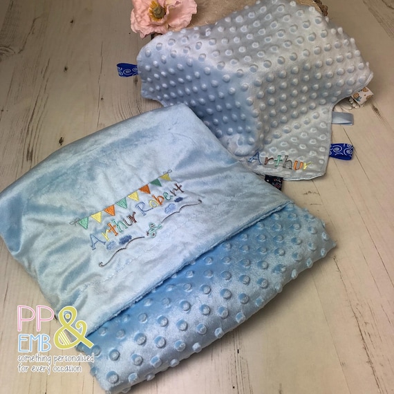 Baby Blue Blanket and Taggie with baby bunting blankets