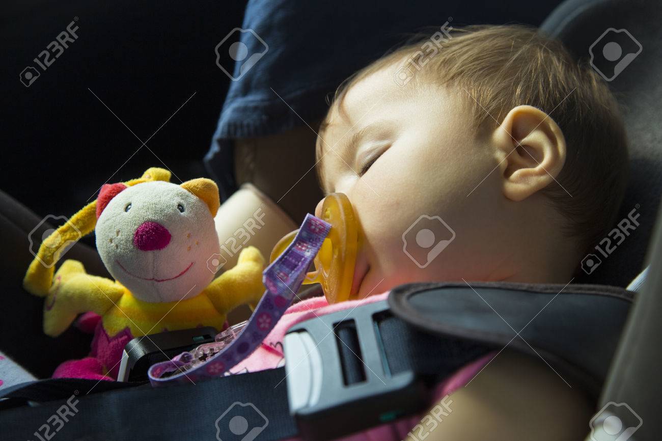 9 Months Old Baby Girl Sleeping In The baby car seat 9 months