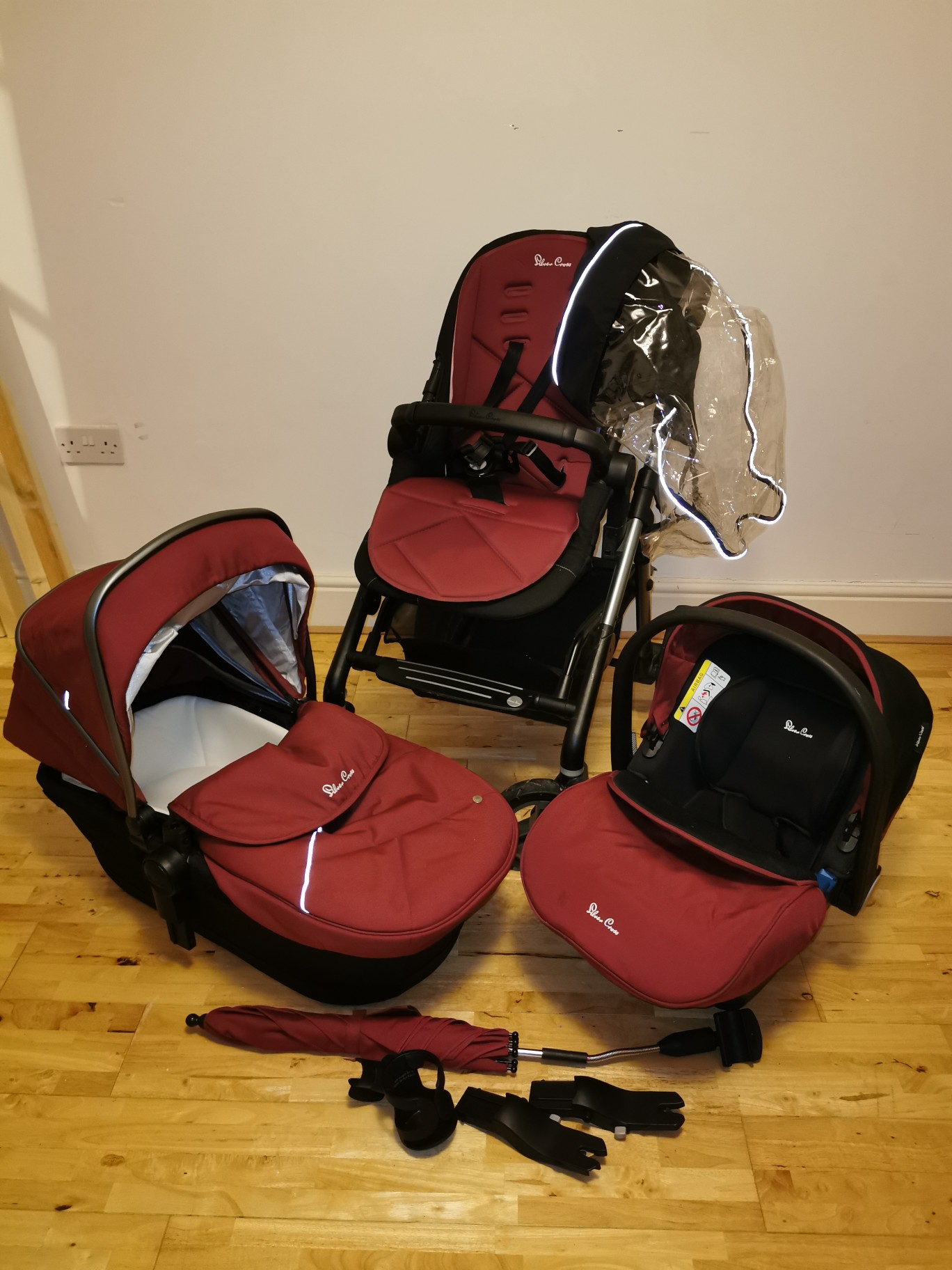 Silver Cross Wayfair travel system in vintage red silver cross