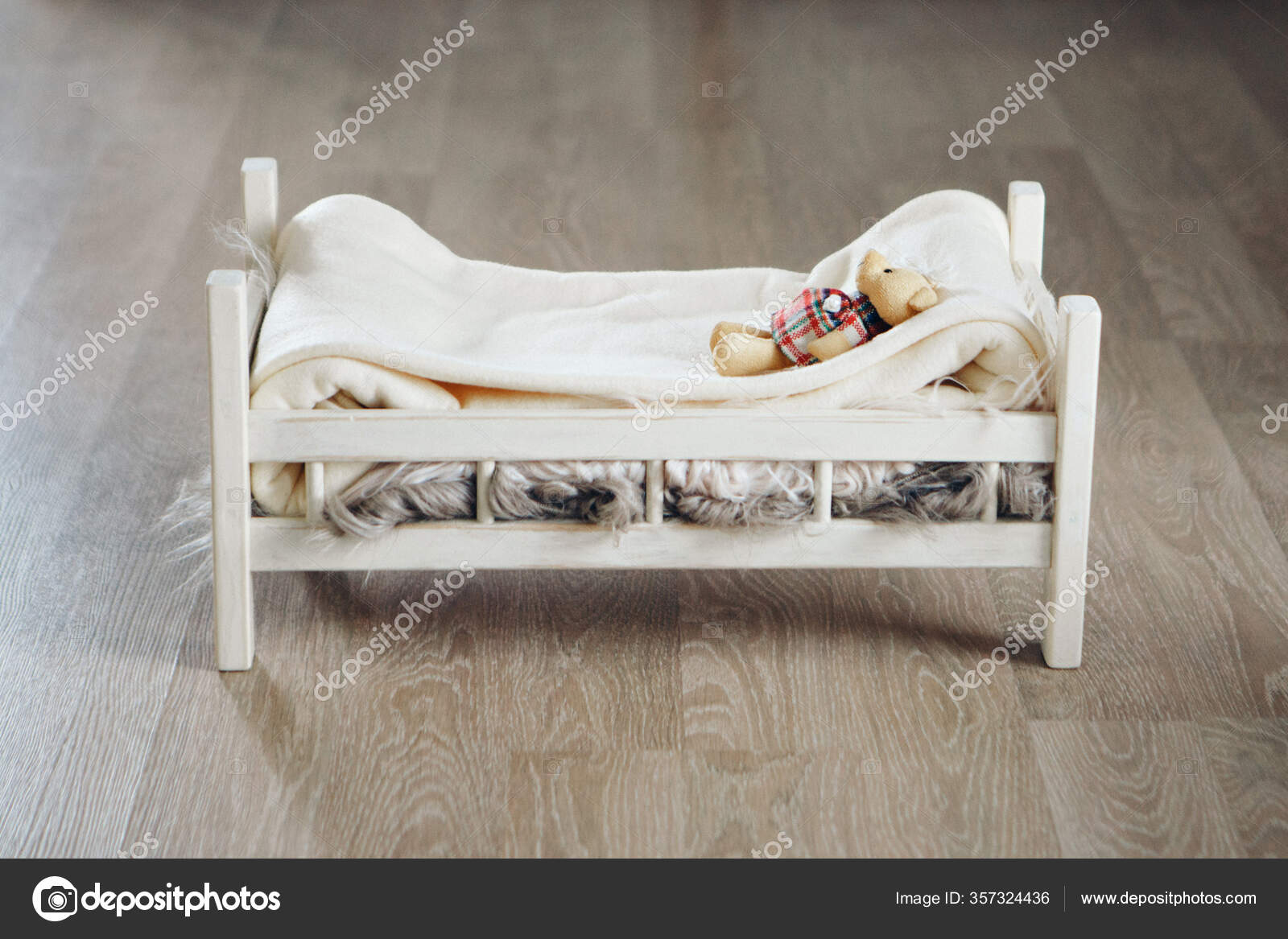 Top View Teddy Bear Lying Wooden Cot wood cot furniture