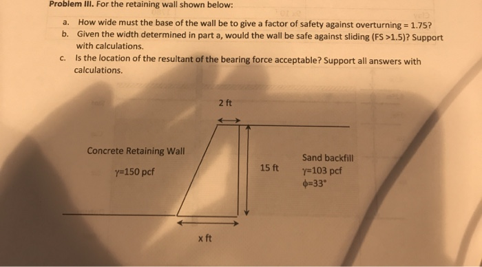 The Cantilever Retaining Wall Shown base be safe