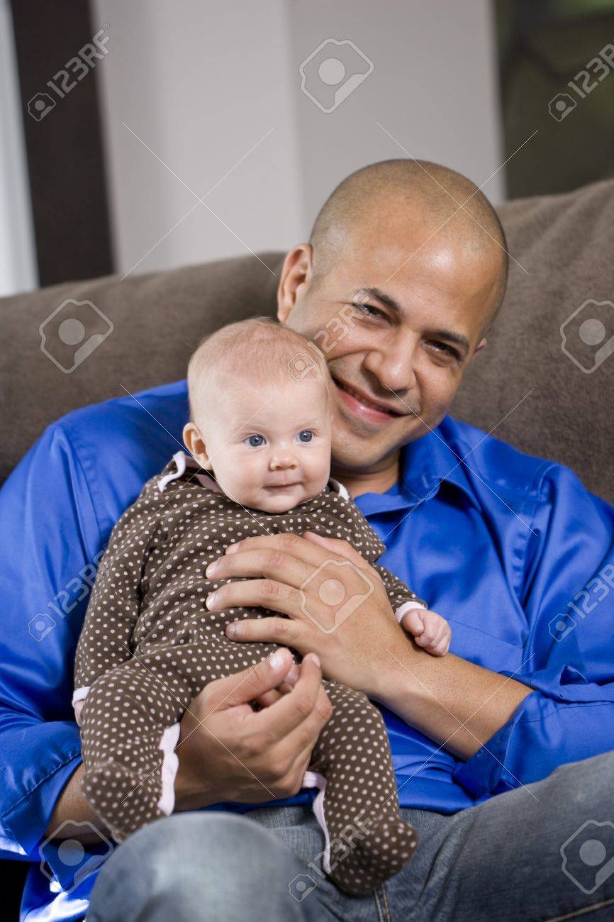 Happy Dad With 3 Month Old Baby Sitting 3 month old sitting