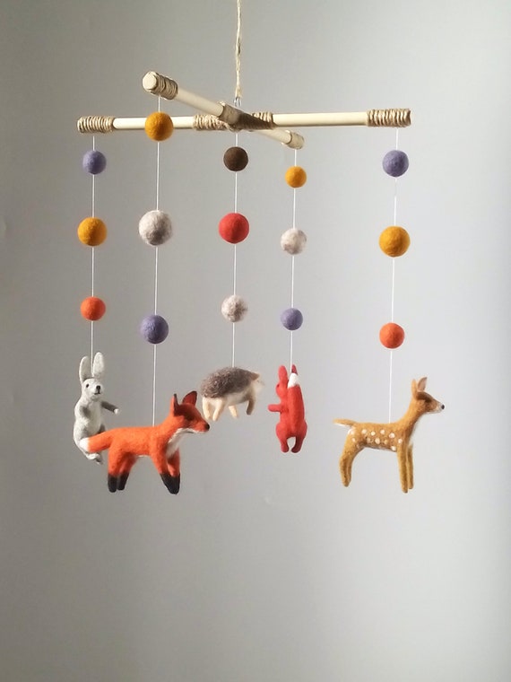 Felt woodland baby mobile Nursery crib forest cot mobile