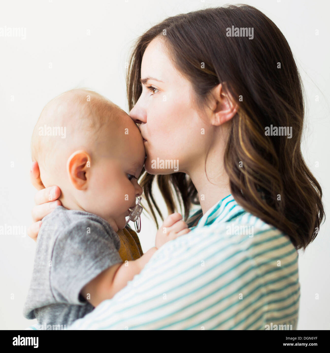 Studio portrait of mother kissing baby mother kiss baby