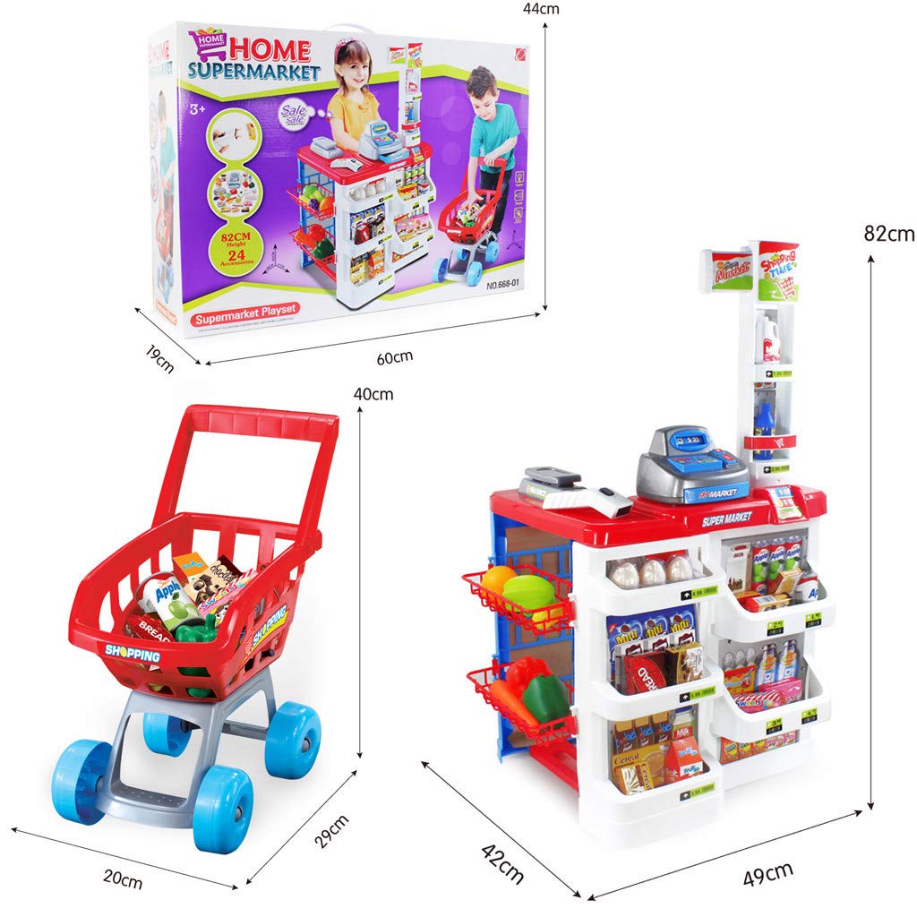 Kids Play Pretend Supermarket with superstore playset with trolley