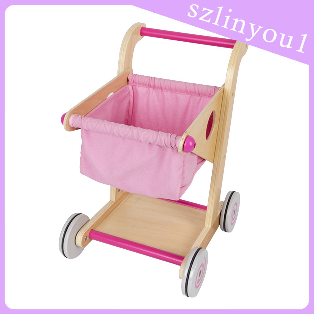Wood Supermarket Trolley Toy Wooden kids wooden shopping trolley