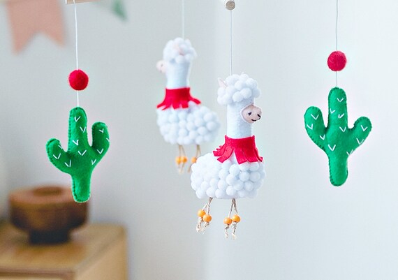 Mama Llama \u0026 Cactus Baby crib mobile modern nursery mobile
