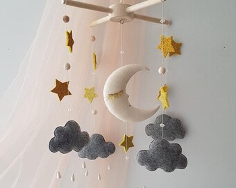 Moon star mobile | Etsy baby musical mobile star and moon
