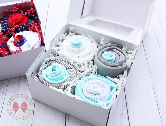 Baby Gift Basket, Baby Shower Gift cupcake onesies gift idea