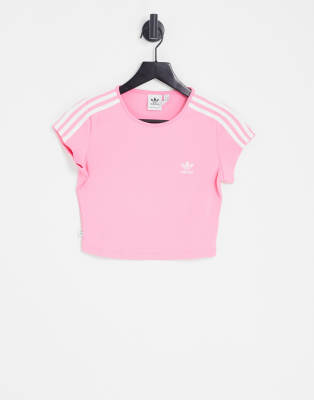 adidas Originals adicolor three stripe cropped t-shirt in bliss pink | ASOS pink 3 stripe adidas shirt