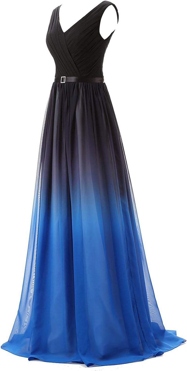 Ombre Chiffon V-neck Long Semi-formal