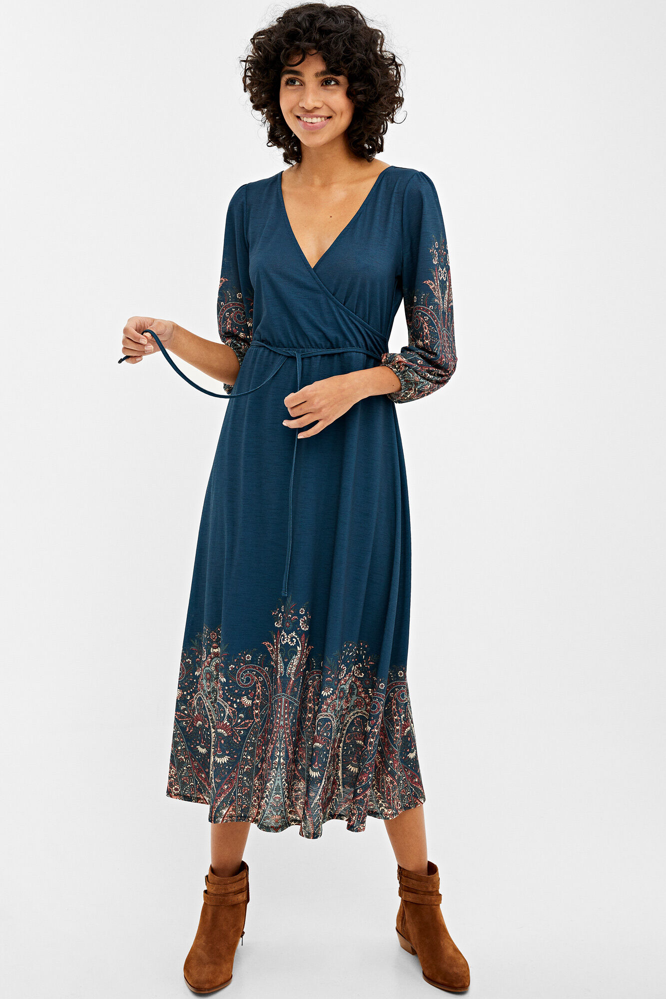 Crossover neckline midi dress | Dresses navy midi dress with sleeves