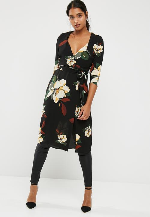 Floral midi wrap dress - black print new look midi wrap dress