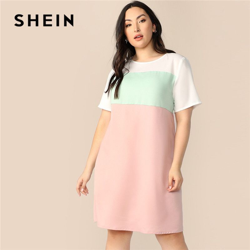 SHEIN Plus Size Keyhole Back Color shein midi dress