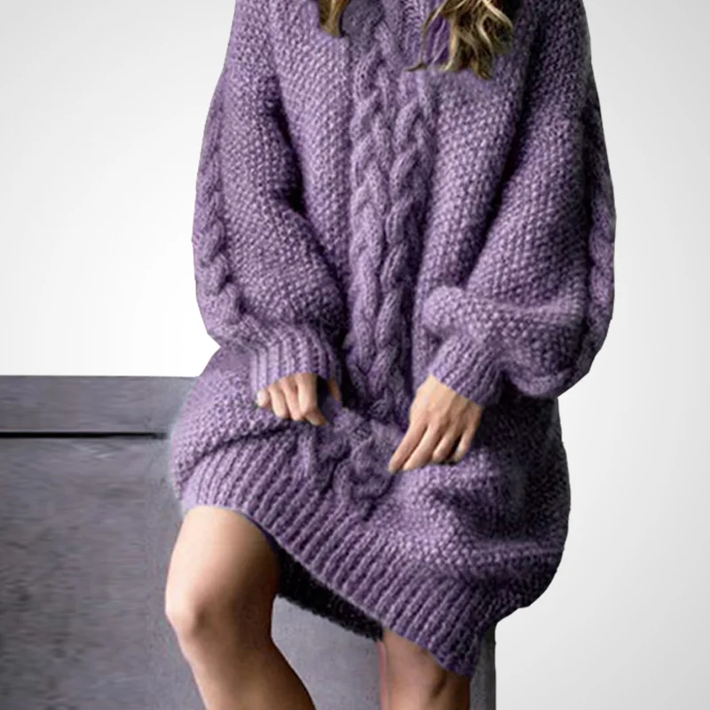 Sweater Dress Women 2019 Winter Autumn purple sweater dress plus size