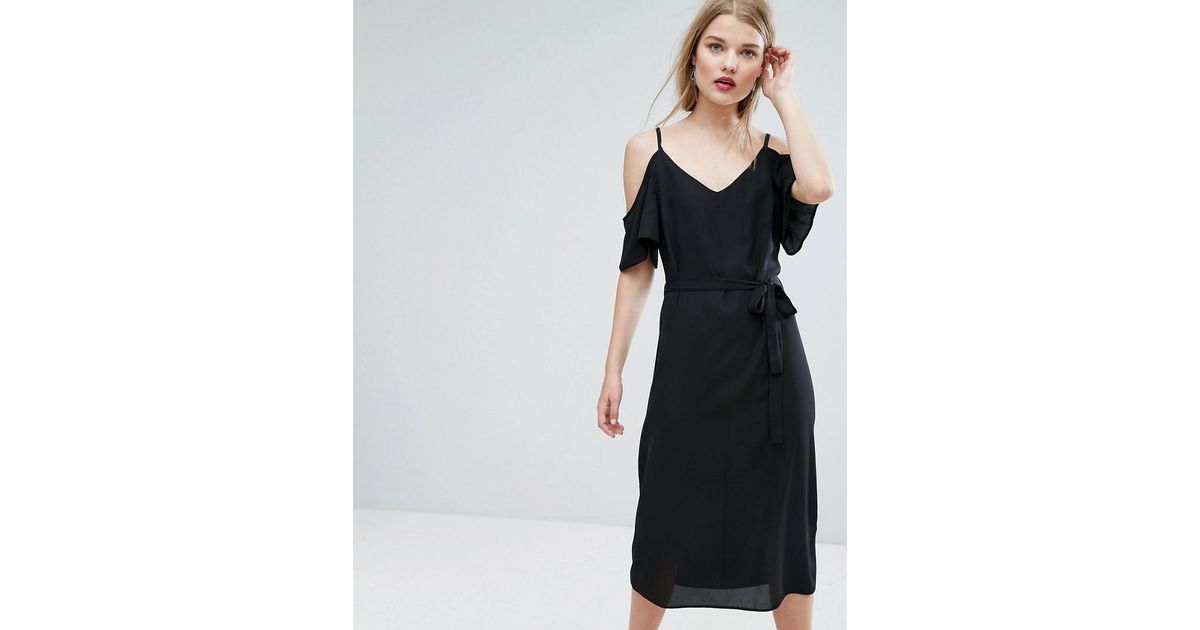Tie Waist Cold Shoulder Midi Dress new look black dress