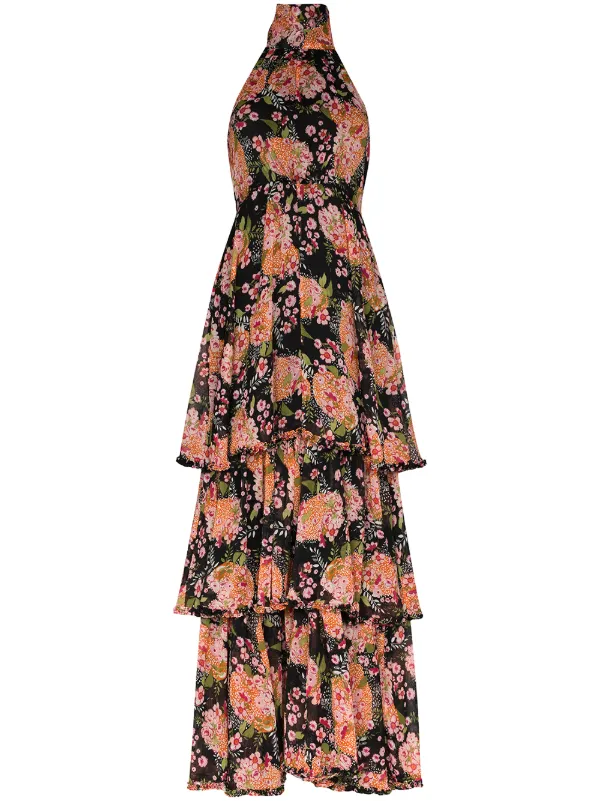 byTiMo Halterneck Floral Print Maxi walk through maxi dress