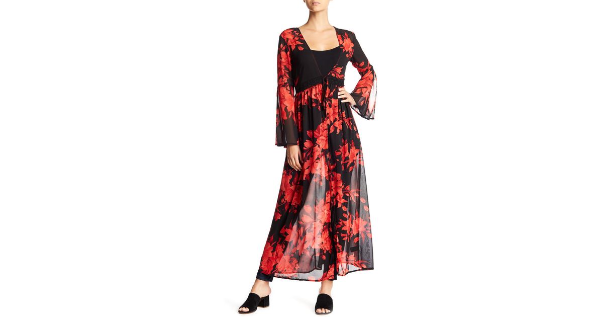 Lyst - AAKAA V-neck Long Sleeve Maxi walk through maxi dress