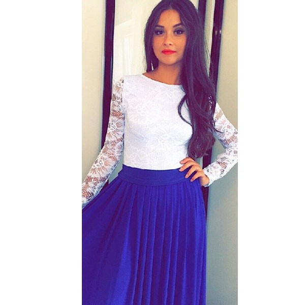 LSD076 Elegant Lace Long Sleeve Blue blue maxi