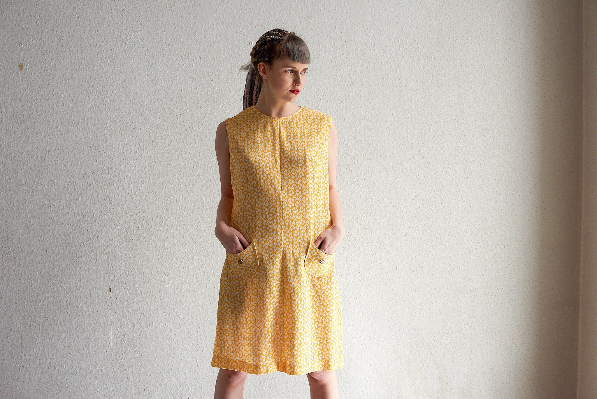 Vintage sunny yellow shift 70s sundress short yellow sundress