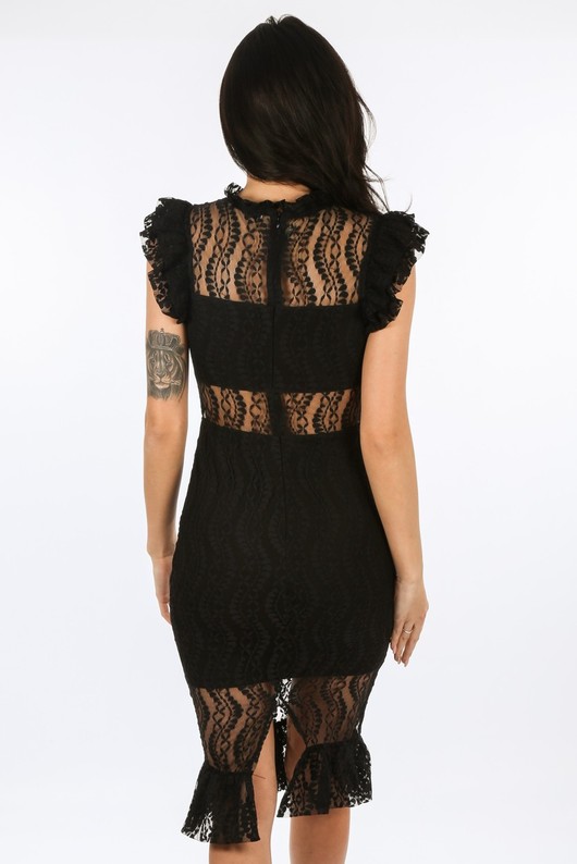 Frill Black Polkadot Sheer Midi Dress black sheer midi dress
