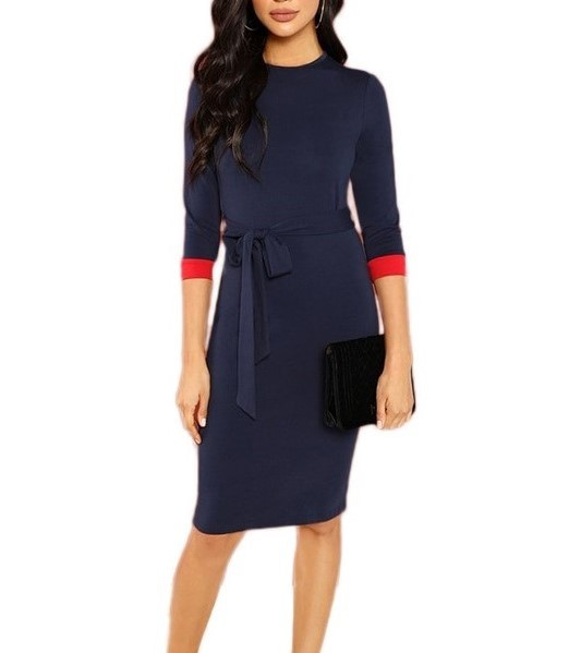 Navy Tie Waist Bodycon Dress tie waist bodycon dress