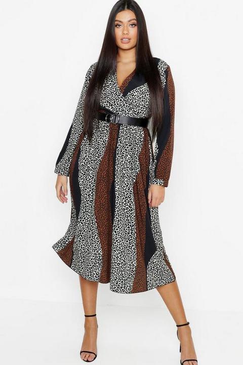 Plus Mix Leopard Print Wrap Midi Dress boohoo leopard wrap dress