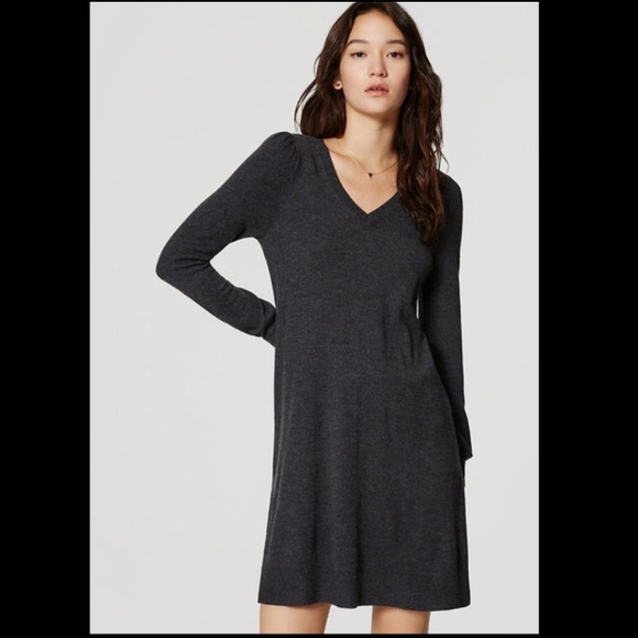 Vneck Swing Gray Sweater Dress v neck sweatshirt dress