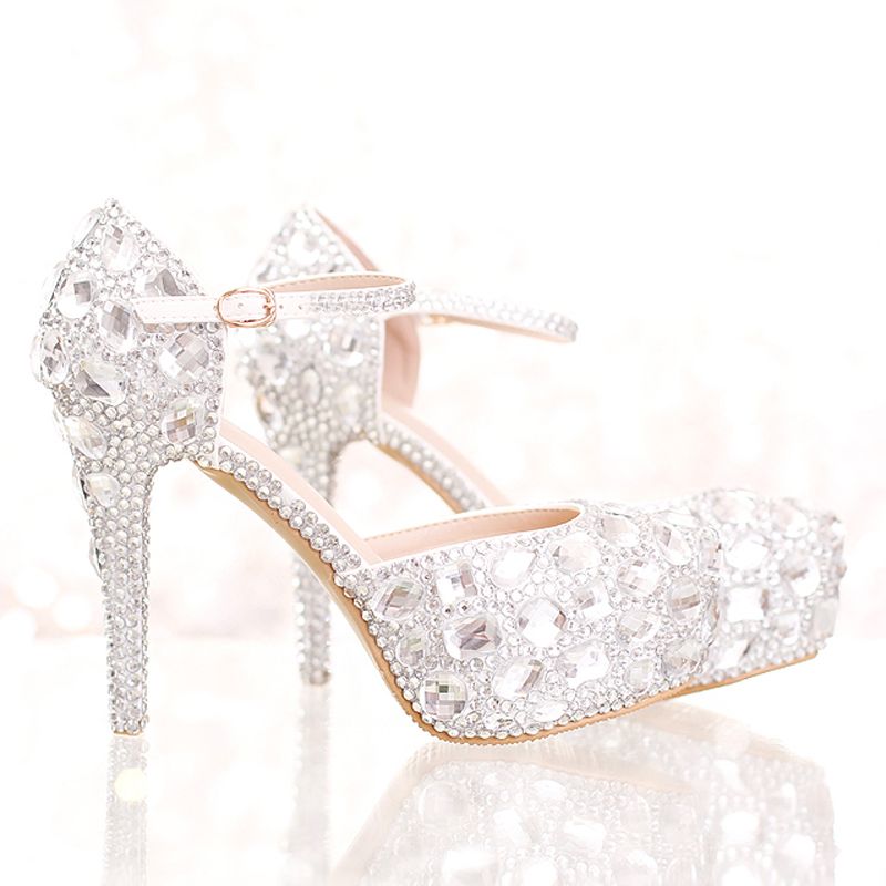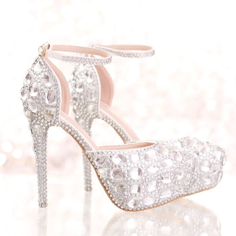 Großhandel Silber Strass Braut Brautkleid Schuhe Mit Knöchelriemen neymar fußballschuhe 2017