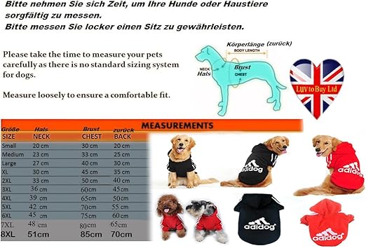 Adidog, Hundekleidung,für kleine und große Hund (S bis 8XL) Farbe adidas pullover hund