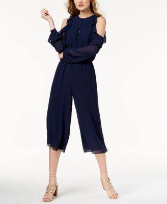 Flounce-Trim Cold-Shoulder Jumpsuit michael kors cold shoulder jumpsuit
