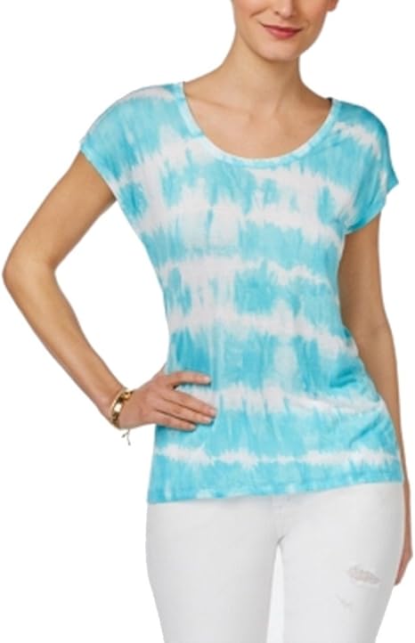 Scoop Neck Tie-Dye T-Shirt Blue XS michael kors t shirt womens 2017