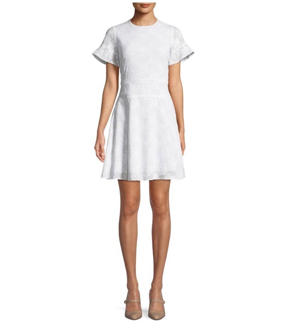 Jacquard Short-Sleeve A-Line Dress michael kors a line dress