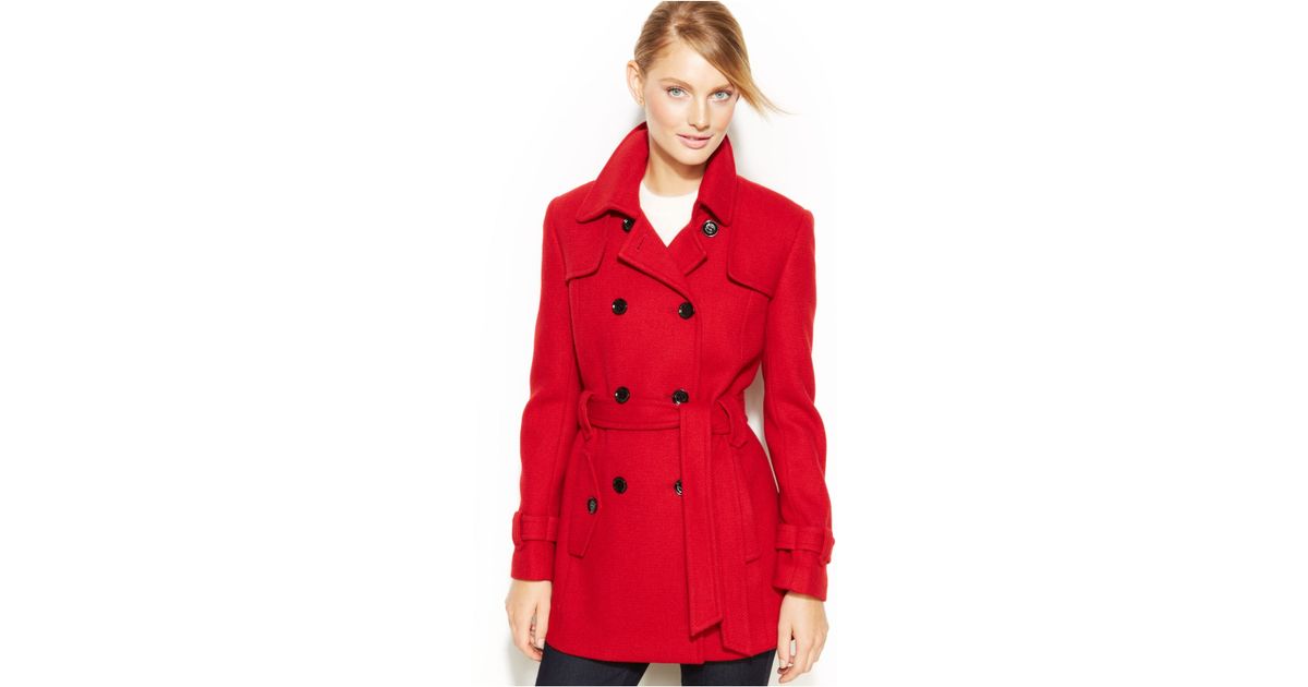 Calvin Klein Double-Breasted Belted Pea calvin klein double breasted coat