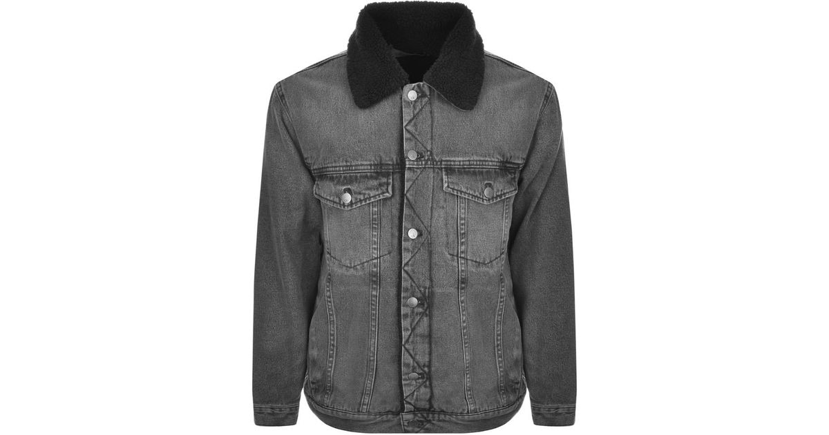 Calvin Klein Denim Sherpa Jacket Grey calvin klein sherpa trucker jacket