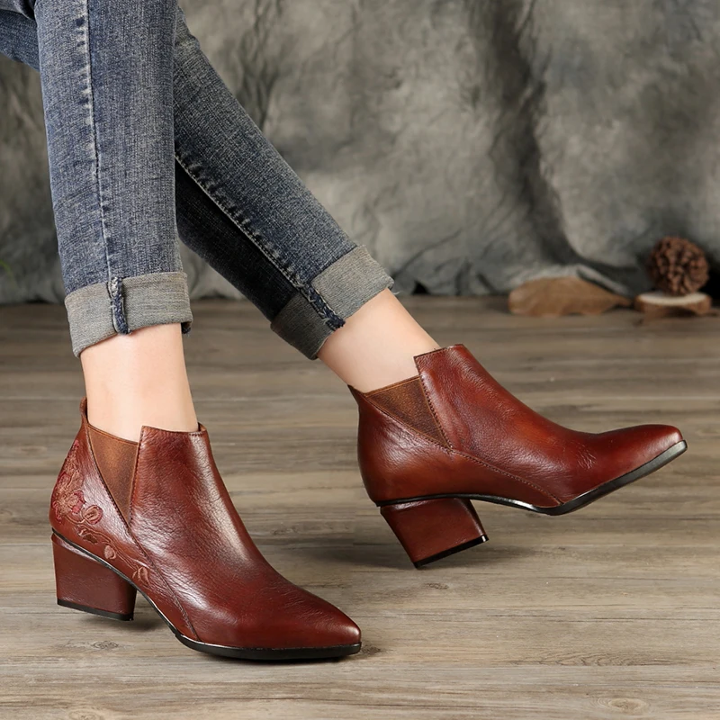 Embroidery Floral Boots Shoes Woman New low cut ankle boots