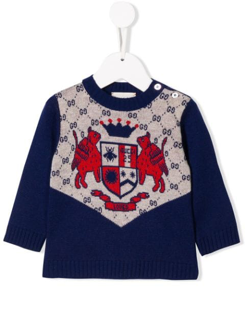 Coat Of Arms Intarsia Sweater In Blue gucci intarsia sweater