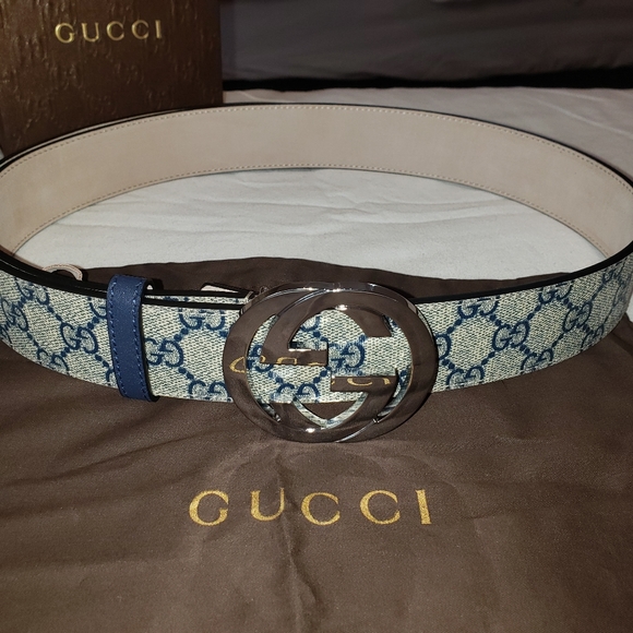 gucci blue monogram belt