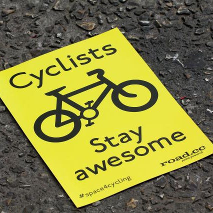 Stay Awesome sticker / road.cc wrapping a bike frame