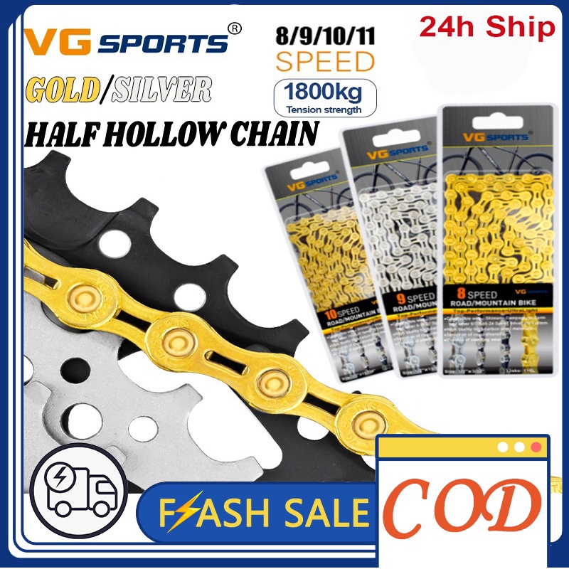 VG Sports Half Hollow Bike MTB Chain 8 /9 Speed/10 /11 Speed BIke chain for mtb Golden Silver halfords bike chain