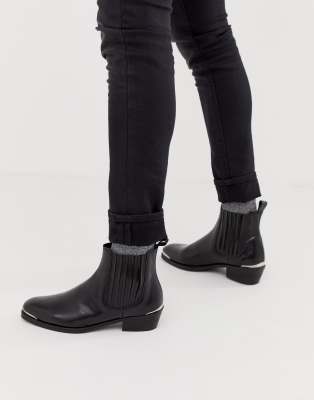 asos design cuban heel western chelsea boots in black leather with buckle detail