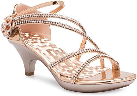 Rhinestone Dress Sandal Low Heel rose gold low heels