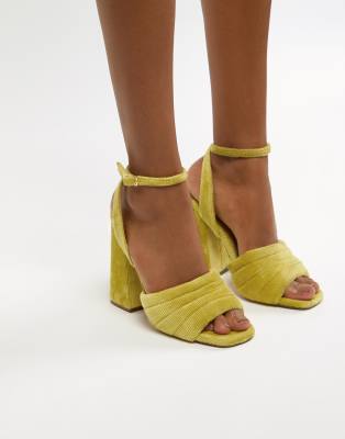 ASOS DESIGN Haiku padded Block Heeled yellow sandals asos